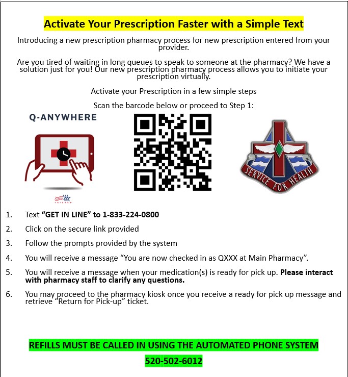 - For new electronic prescriptions from off-post providers; we Do Not fill electronic prescriptions until the patient requests them to be filled. Please utilize the Q-Anywhere system to have the prescription processed.